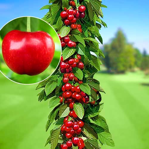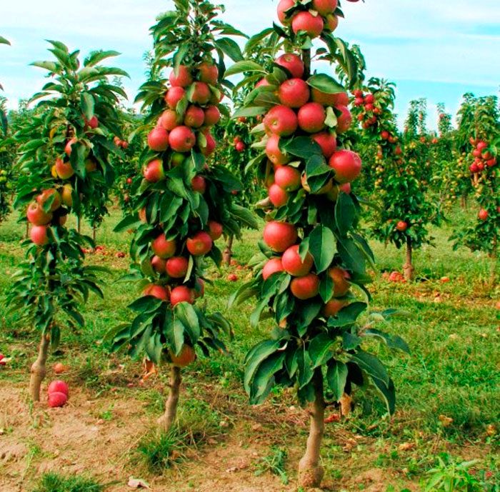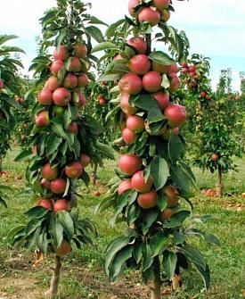 По видам саженцы колоновидных деревьев можно разделить на семенных карликов (в них присутствует «карликовый» ген) и привитых карликов (к корневой системе плодового дерева делается прививка карлика). В высоту достигают до 2,5 метров. Требуют обязательной обрезки ветвей, в противном случае вырастают традиционные плодовые деревья.