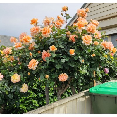 Роза «Ашрам» — это удивительно красивый сорт с крупными ароматными цветками. В начале цветения они имеют яркий медно-коричнево-оранжевый оттенок, но со временем светлеют. Поскольку бутоны распускаются не одновременно, куст приобретает необычайно яркие краски.